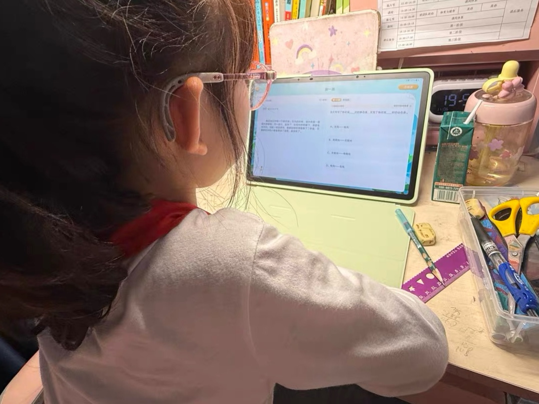 圆圆在直播间中为男儿购买的学习机。受访者供图